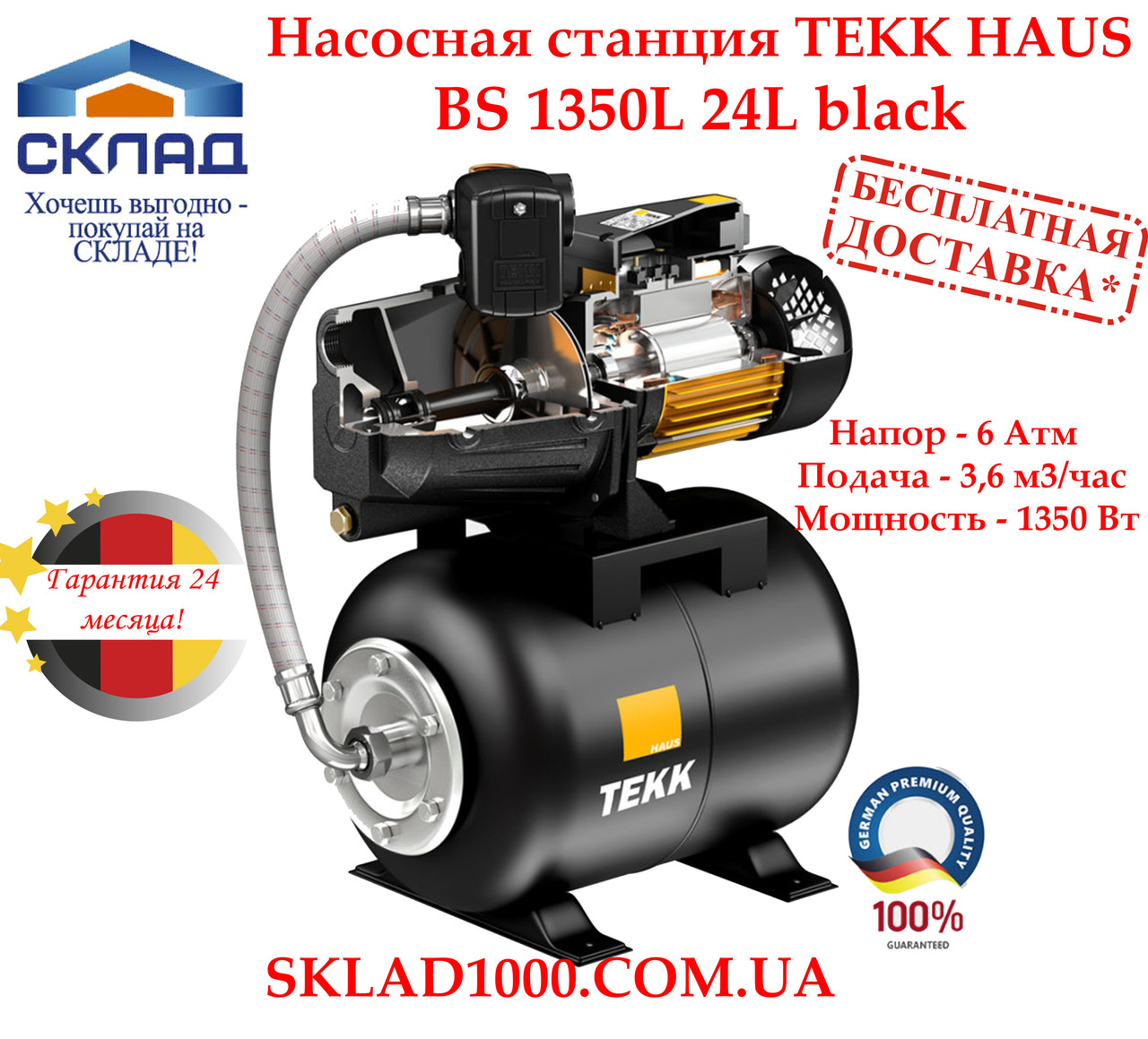 Гарантія на насосну станцію TEKK HAUS BS 1350L 24L — повних 2 роки! Що, безумовно, говорить про його надійність і якість!