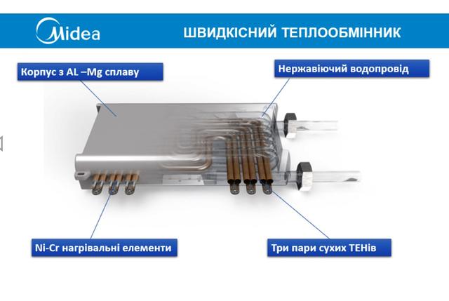 - Три пари сухих ТЕНів, які можуть функціонувати почергово для тривалішого терміну експлуатації